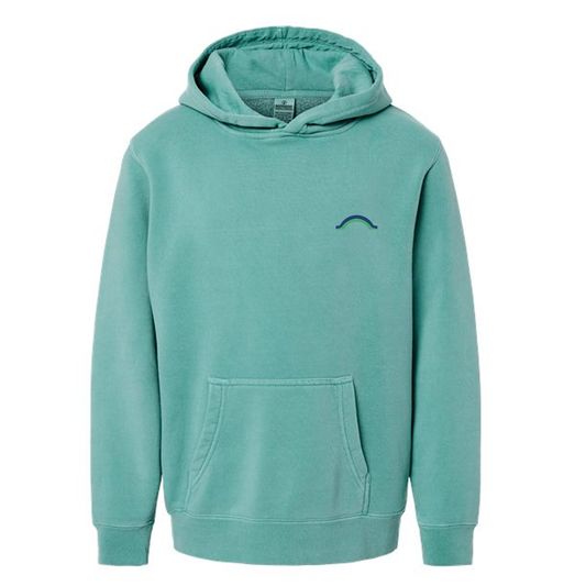 Youth Pigment Mint Hoodie with Navy Logo
